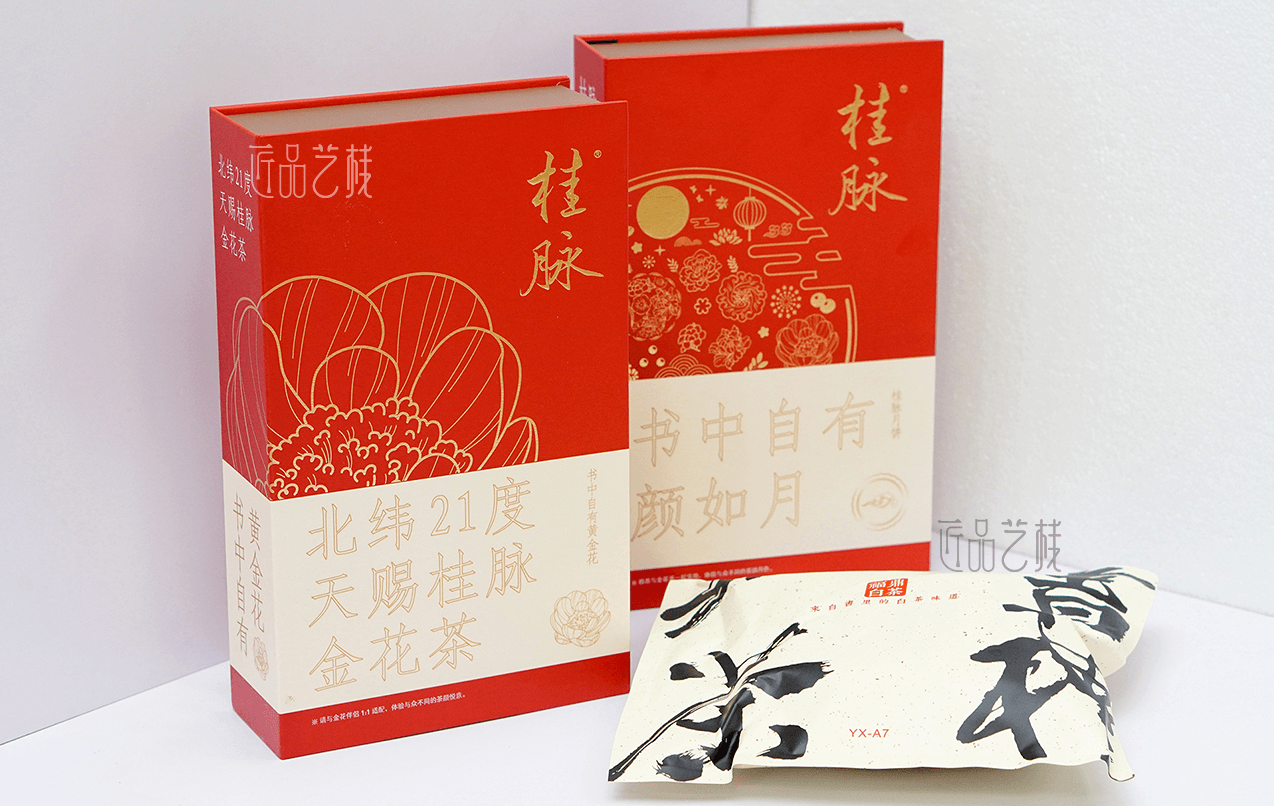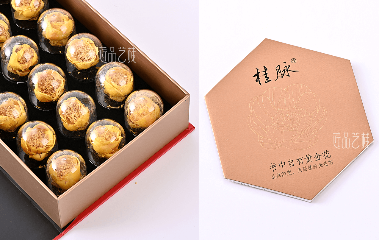 桂脈金花茶,廣西金花茶領(lǐng)導(dǎo)品牌。金花茶是上古時代遺留下來的原始山茶遺珍,在桂脈品牌金花茶設(shè)計定制中,佳潤隆包裝&匠品藝棧采用傳統(tǒng)書籍的創(chuàng)意形式,結(jié)合現(xiàn)代的印刷工藝和簡約風(fēng)格,搭配質(zhì)感紙質(zhì)和內(nèi)托精制而成;使整理禮盒呈現(xiàn)出中國韻味文化,同時又不失送禮時的低調(diào)輕奢品質(zhì),打開包裝,金花燦燦,寓意貴氣人脈來,送禮倍有面。