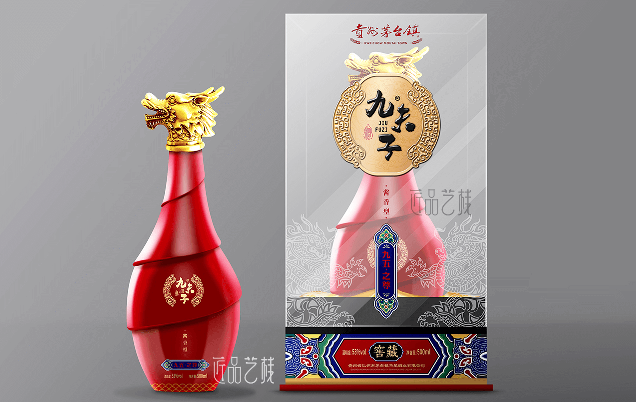 貴州茅臺鎮(zhèn)白酒品牌九夫子酒,選用茅臺鎮(zhèn)本地優(yōu)質(zhì)糯高粱和小麥,取水于赤水河水,具有醬香突出、優(yōu)雅細膩、空杯留香持久等獨特風格。在九夫子酒品牌產(chǎn)品包裝設計定做中,采用一言九鼎、鳳舞九天、九五之尊系列分類,設計統(tǒng)一的品牌圖標,并根據(jù)每個系列的特點和定價,設計不同包裝形態(tài)、元素和色彩的包裝酒盒,形成統(tǒng)一的品牌傳播形象和提升產(chǎn)品價值。