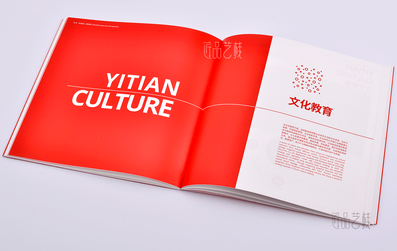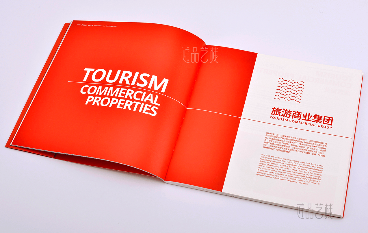益田集團經(jīng)過20年的積累已發(fā)展為擁有旅游商業(yè)、地產(chǎn)、文化教育、養(yǎng)老醫(yī)療等大型的企業(yè)集團公司,在其集團畫冊的印刷定制中,采用紅色特種紙為封面材質(zhì),以專紅色為集團不同版塊協(xié)調(diào)搭配,使集團業(yè)務(wù)和優(yōu)勢清晰,并整體呈現(xiàn)出集團的品質(zhì)和理念。